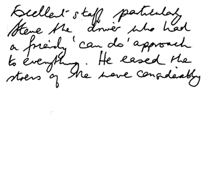 And last, but certainly not least Steve the driver who was constantly cheerful and optimistic and for whom nothing was too much trouble well done everyone.