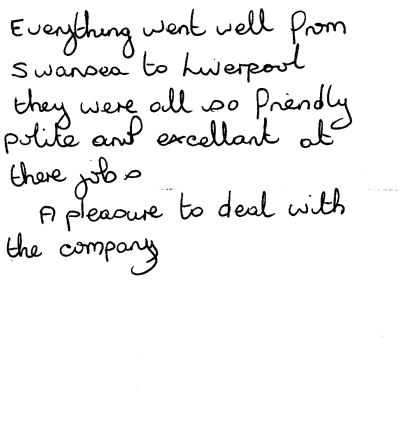 “Everything went well from Swansea to Liverpool. They were all so friendly, polite and excellent at their jobs.